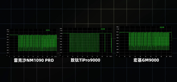 致态TiPro9000、宏碁GM9000、雷克沙NM1090 PRO三款SSD分列四、五、六名,性能表现上基本一致。