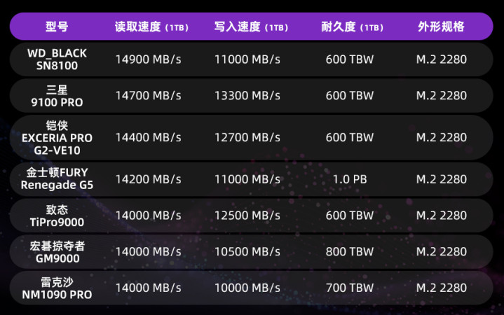 本次横评涉及的7款SSD均为主流热销品牌中的PCIe 5.0 SSD旗舰盘: